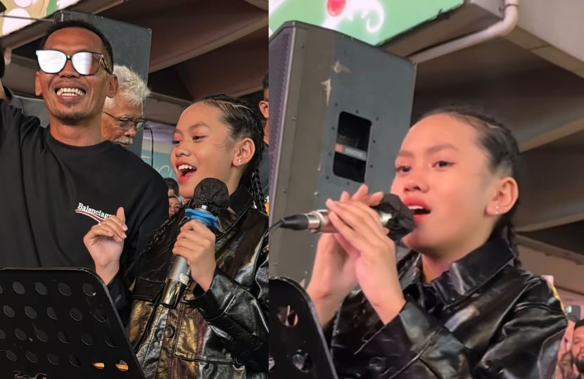 Talita atau Dzahira Talita Zahra, 12, dilihat mengalirkan air mata ketika menyanyikan lagu ibunya iaitu Allahyarham Siti Sarah Raisuddin berjudul Kesetiaan di hadapan 5,000 penonton.