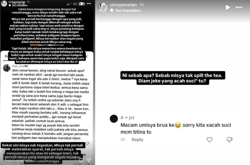 SUDAH lama menahan sabar dengan pelbagai tuduhan netizen, pempengaruh media sosial, Umisya Mazlan akhirnya tampil menjawab segala dakwaan kononnya dia cuba mengawal suaminya, Aslam dalam urusan poligami.